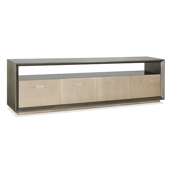 Case Finish: Metallic PewterBase & Door Finish: ProseccoHardware: 8" Acrylic Pulls in Brass