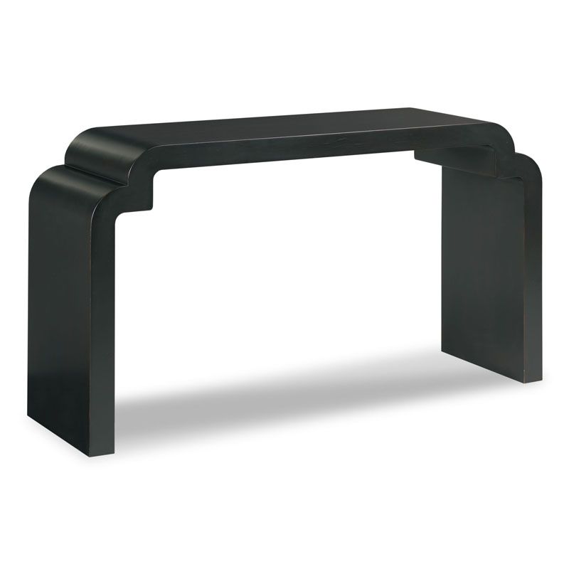 A very unique hall table with a top in ash wood cascading downward across the ends to the floor.