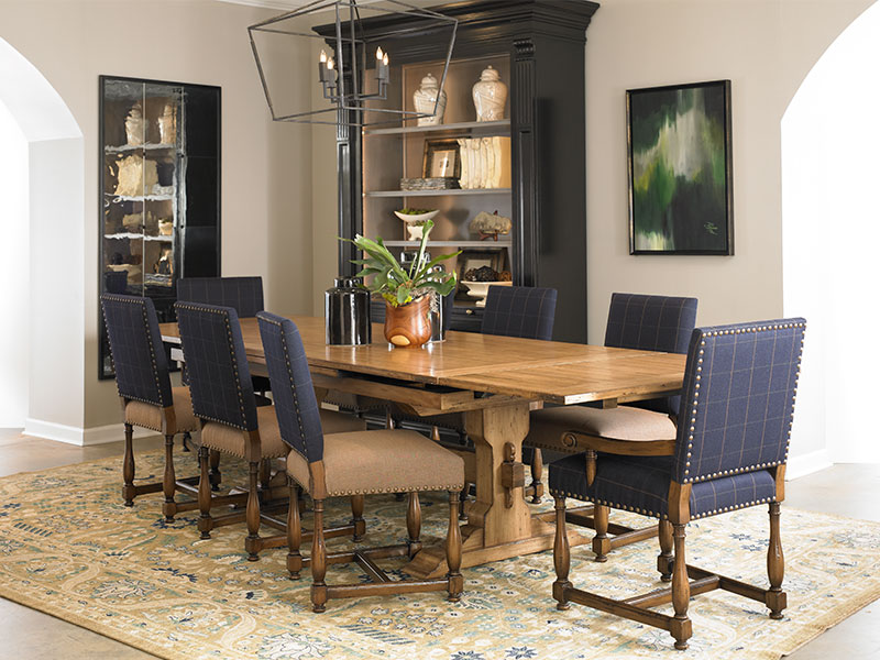 Products Shown:Delaney Dining Table 17128 McDermot Chair 16969B & 16968A Noland Library 16914BAvailable in all OBD FinishesCustom sizes available