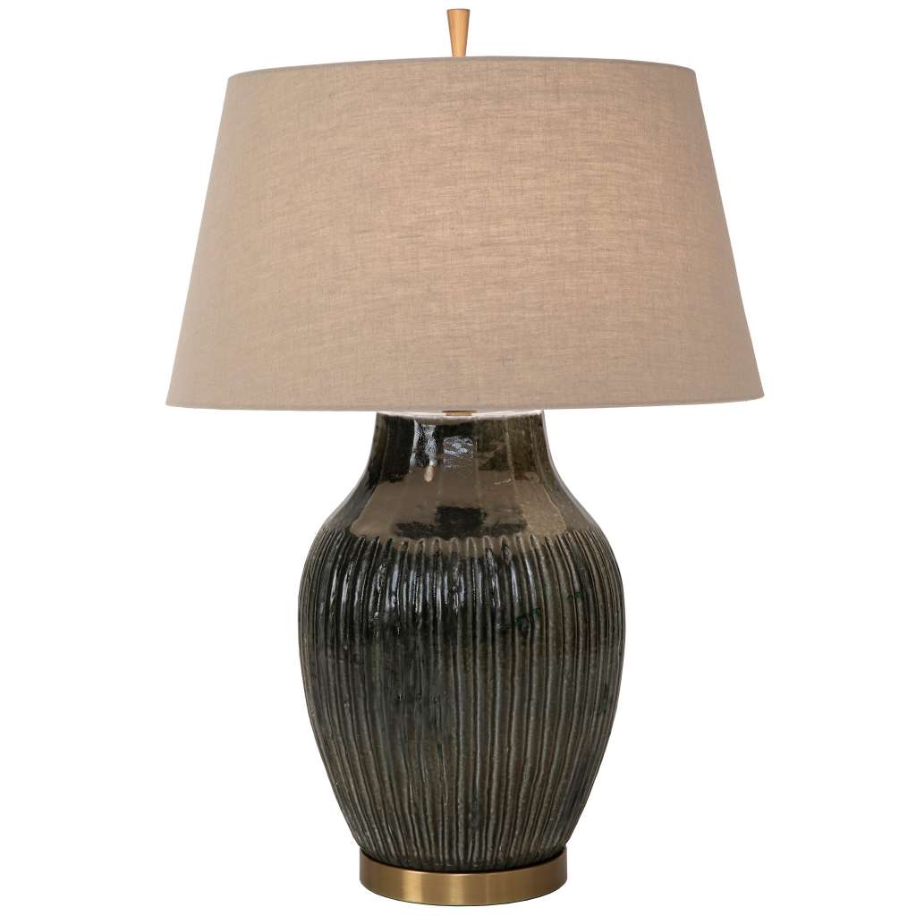59114- DOMINIC ●Reactive Dark Green 31″H DOMINIC Shade Options: 89138 – 17x22x12″ Round Canted Linen Irish 89017 – 20x21x11″ Round Drum Linen Oatmeal 89027 – 20x21x11″ Round Drum Sailcloth White 89138 – 17x22x12″ Round Canted Linen Irish 89017 – 20x21x11″ Round Drum Linen Oatmeal 89027 – 20x21x11″ Round Drum Sailcloth White Reactive Glaze Reactive glaze is a type of glaze that undergoes a chemical reaction during firing, creating a unique pattern or color. The glaze is made from different raw materials, including organic, mineral, or metallic, and then applied to the pottery piece after biscuit firing. The glaze is then smooth-fired, which results in a unique finish that can’t be predicted. This means that no two pieces of reactive glaze pottery are identical, and each piece has a unique appearance with features like blemishes, dimples, aesthetic cracking, and unevenness to the touch. Reactive Glaze Reactive glaze is a type of glaze that undergoes a chemical reaction during firing, creating a unique pattern or color. The glaze is made from different raw materials, including organic, mineral, or metallic, and then applied to the pottery piece after biscuit firing. The glaze is then smooth-fired, which results in a unique finish that can’t be predicted. This means that no two pieces of reactive glaze pottery are identical, and each piece has a unique appearance with features like blemishes, dimples, aesthetic cracking, and unevenness to the touch.