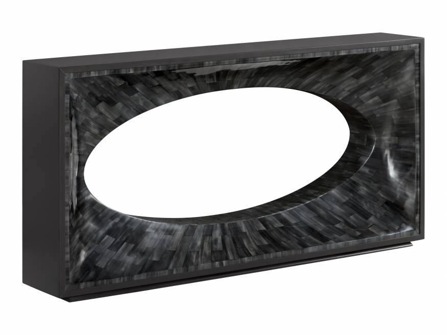 Faux horn motif hand-painted by artists on individual resin tiles in a dark gray bone coloration. Faux horn tiles will vary in appearance and coloration from piece to piece.