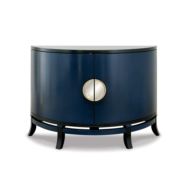 Finish: Mariner Blue with Black Trim · Hardware: Antiqued Mirror Pulls with Gold Leaf TrimWidth: 48”Height: 34”Depth: 18”Available in all OBD finishesCustom sizes available