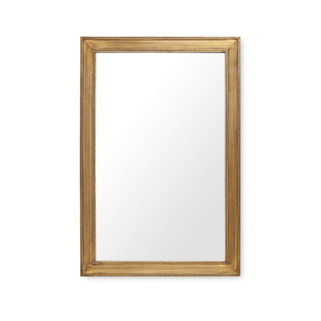 The Ellen Mirror makes for a handsome accent in an entryway, corridor, sitting room, or bedroom. Its classic rectangular shape boasts an antiqued brass frame, double-bordered by hand-hammered metallic ribbons. The delicate details are a testament to our expert craftsmanship. Extra dimensionality is provided by the double-paneled brass frame, which has a depth of 2.5 inches. Radiating with warmth and sophistication, the Ellen complements rooms set in deep tones with similar accents, or provides a touch of richness in more minimal decor schemes.