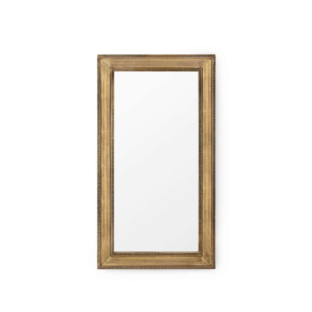 The Ellen Mirror makes for a handsome accent in an entryway, corridor, sitting room, or bedroom. Its classic rectangular shape boasts an antiqued brass frame, double-bordered by hand-hammered metallic ribbons. The delicate details are a testament to our expert craftsmanship. Extra dimensionality is provided by the double-paneled brass frame, which has a depth of 2.5 inches. Radiating with warmth and sophistication, the Ellen complements rooms set in deep tones with similar accents, or provides a touch of richness in more minimal decor schemes.