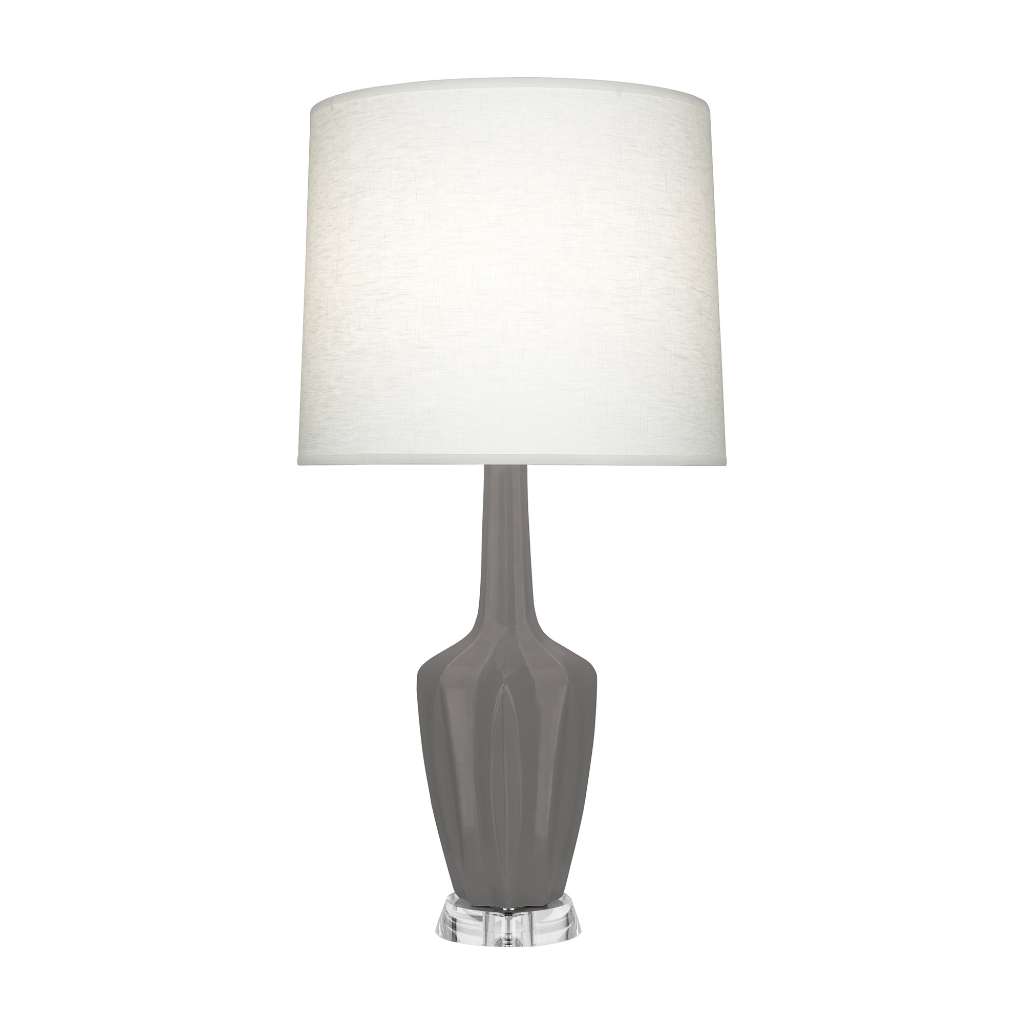 Matte Smokey Taupe Glazed Ceramic With Polished Nickel Accents And A Lucite Base
