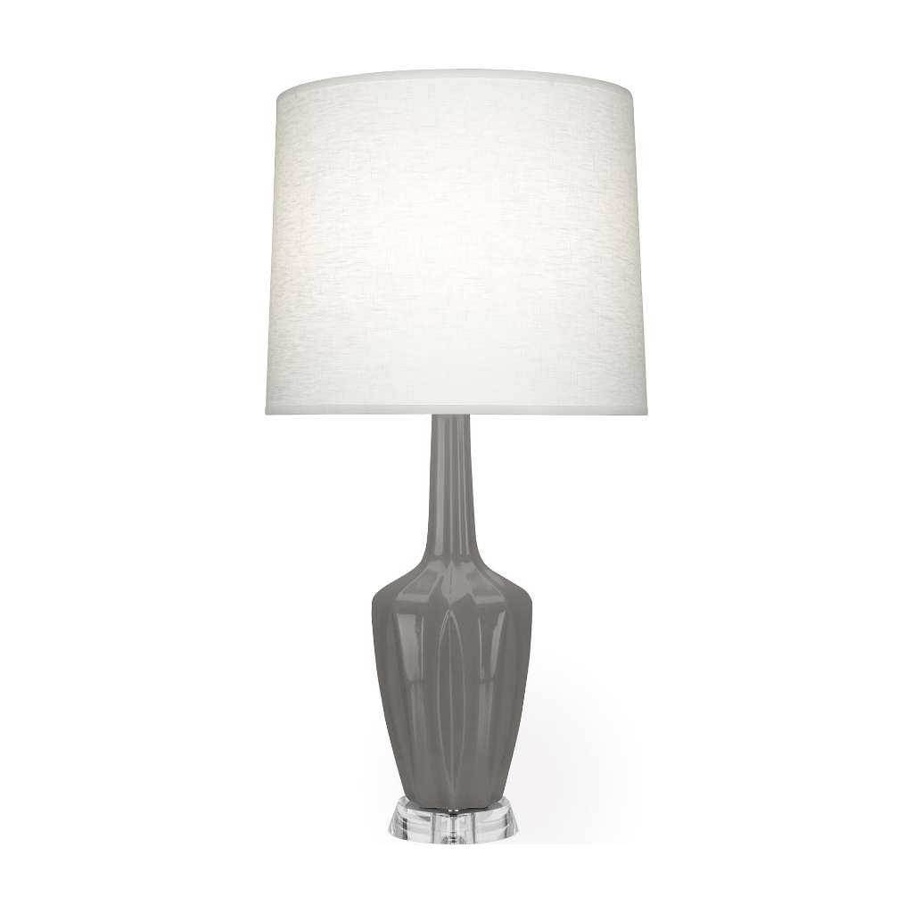 Smokey Taupe Glazed Ceramic With Polished Nickel Accents And A Lucite Base