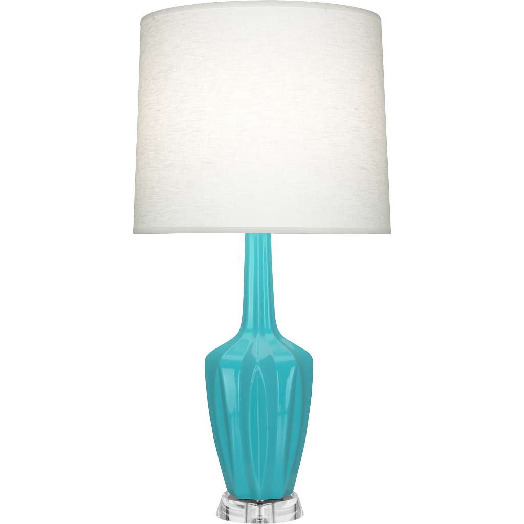 Egg Blue Glazed Ceramic With Polished Nickel Accents And A Lucite Base