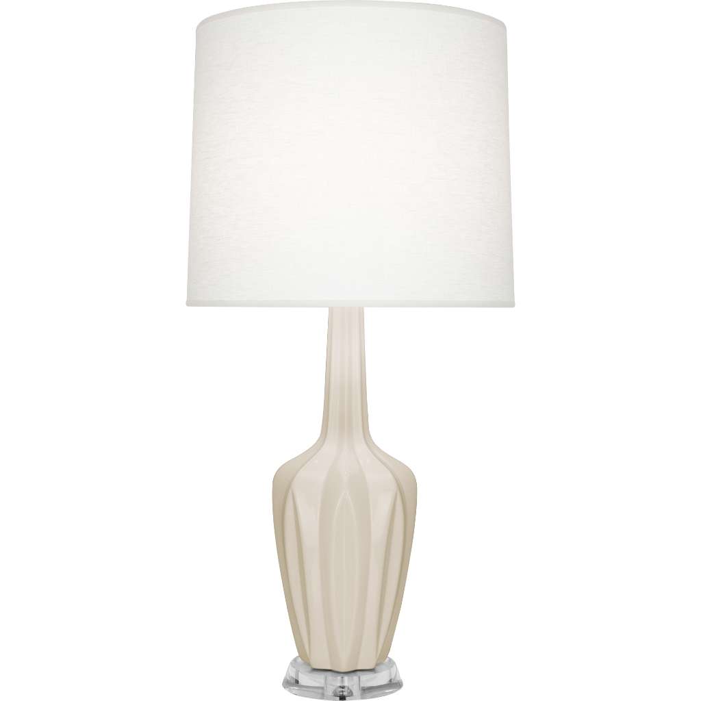 Bone Glazed Ceramic With Polished Nickel Accents And A Lucite Base