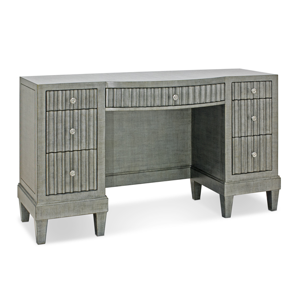 Finish: Iron FrostSculpted Wood: FlutedHardware: August Knob in ChromeWidth: 57” | Height: 32” | Depth: 20”