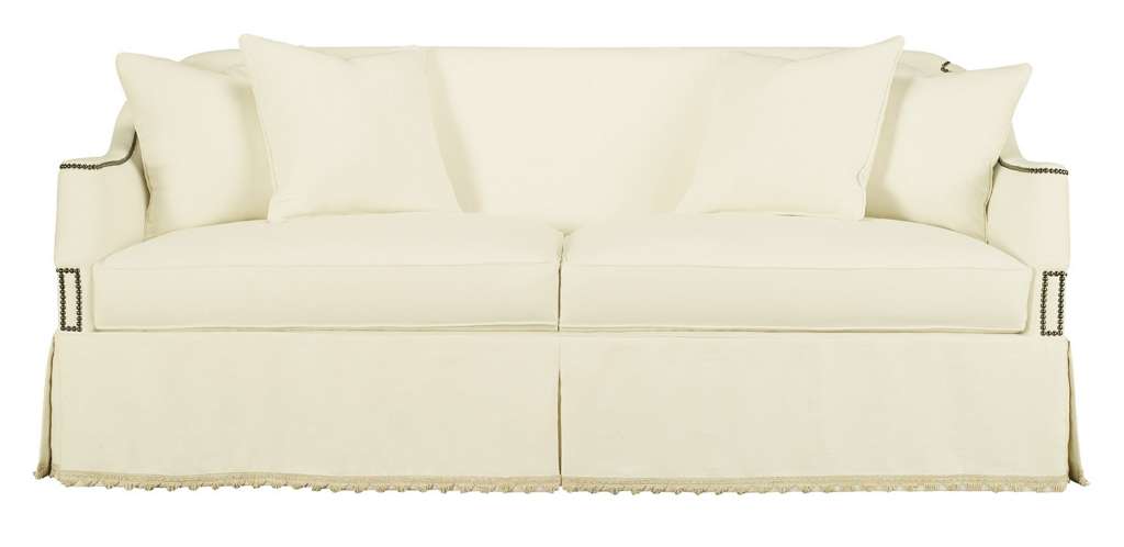 While standard as a 72" personal sized sofa, the Made To Measure® Eton is now available from 32" to 120". Shown as a 88" sofa with optional skirt fringe. One may request no nail head trim for a softer appearance (must specify no nails on the order). A companion chair and swivel chair are available. Shown is the 34-inch Eton Made To Measure with standard nail head trim. Five 20-inch 100% goose feather throw pillows and 3-piece seat cushion standard as an 88-inch Made To Measure size. Standard with NS-00 nail head trim and is available without nail trim on request.