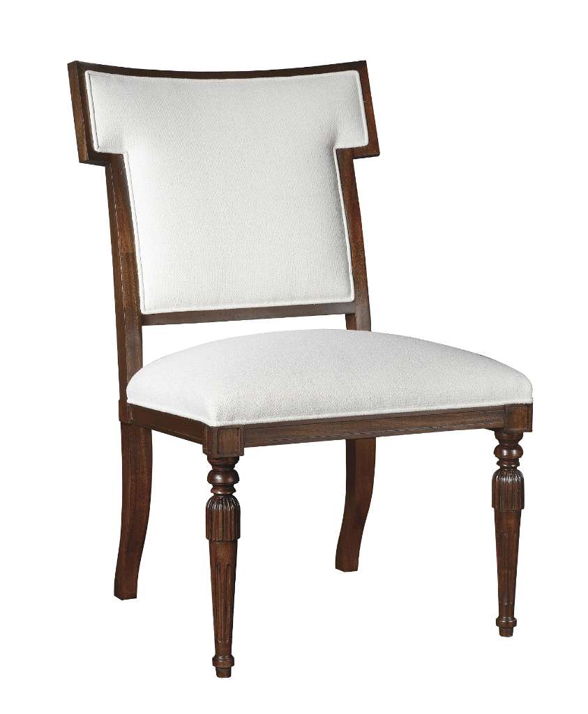 A combination of handsome proportions and delicate details, the Eva arm and side chair features a distinct, framed and t-shaped back over raised panel corner blocks and turned legs with tassel carvings.