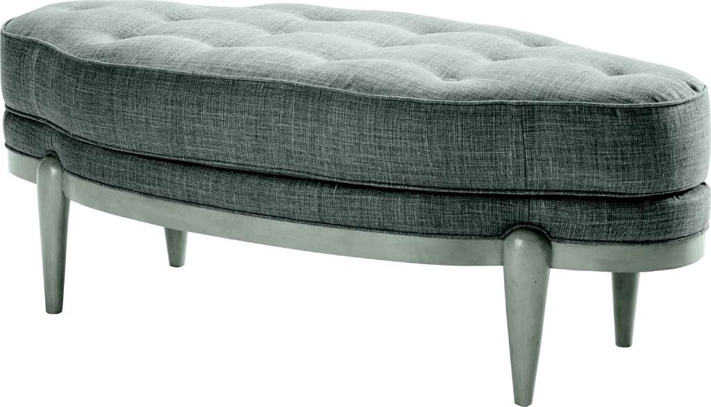 A fully upholstered ottoman, the Fanny has a delicately curved, tufted top that subtly references a clover. The legs offer a smooth transition from the body of the ottoman to the base, tapering into a strong point. Susan Hable visualizes this as a perfect complement to the foot of any bed or even as a coffee/cocktail table adorned with a tray.