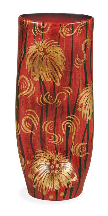 W 9.5 D 8.75 H 15.5 Porcelain abstract vase with gold leaf and floral pattern. Made in Italy. In Stock Buy Now