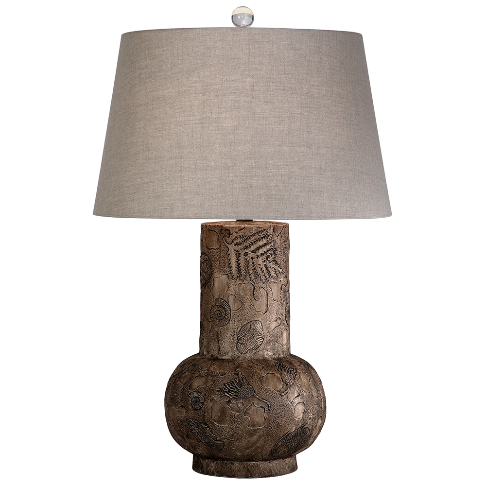 59050- FOSSIL VASE ●Bronze 31″H Shade Option: FOSSIL VASE 89139N – 16x20x12″ Rnd Canted Linen Irish 89016 – 18x19x11″ Rnd Drum Sailcloth White 89139N – 16x20x12″ Rnd Canted Linen Irish 89016 – 18x19x11″ Rnd Drum Sailcloth White