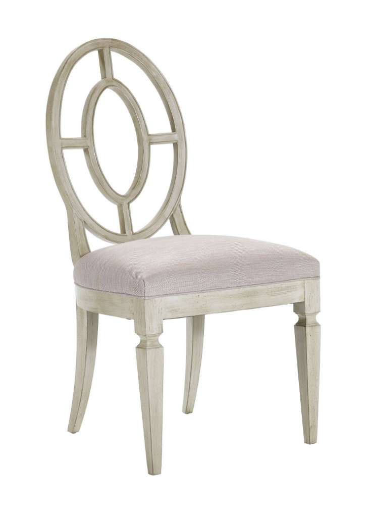 The PE6733-00 George Dining Chair by Kim Scodro updates a classic shape with a unique open back detail. Hand carved bead detail on the in-back enhances the unique double oval back. Standard with 8-way hand tied springs that are sure to enhance any dining experience.