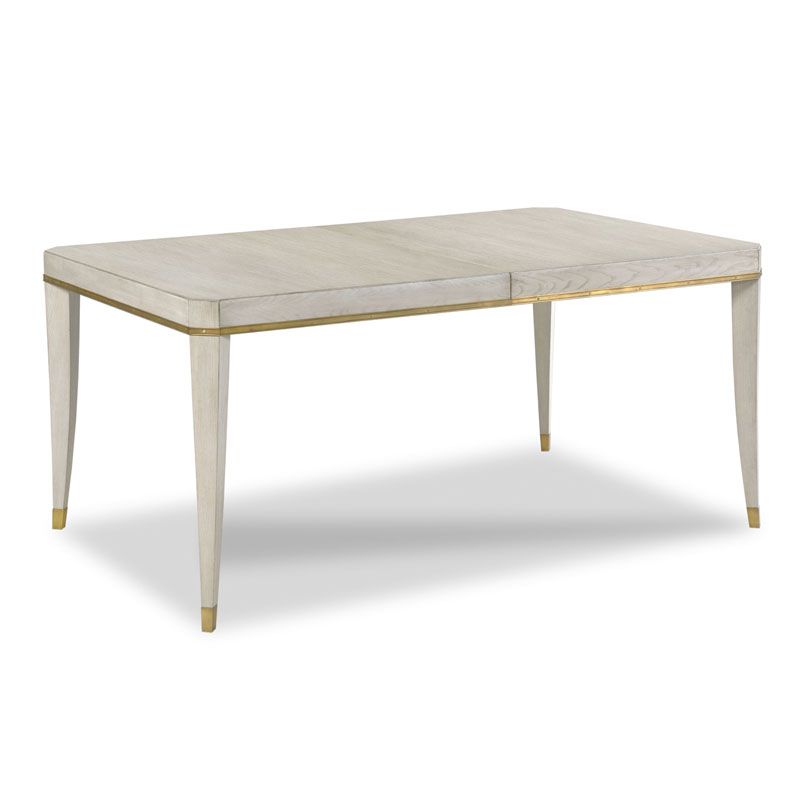 A rectangular top with canted corners and elevated by canted tapering corner posts that terminate to brass sockets. The table top is fitted with 2-20 inch fillers.