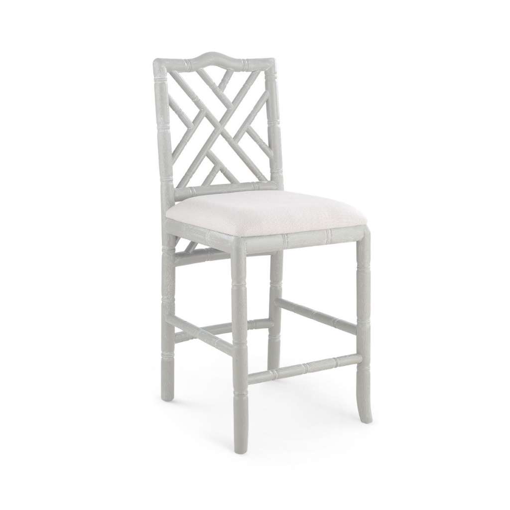 Our Hampton Collection interprets lavish Chinoiserie design through the lens of beachy relaxation. The result? Fabulous furnishings which take you away to a pacific paradise. The limed oak frame of the Hampton Counter Stool is carved to resemble bamboo, underscoring the piece’s inherently organic impression. Subtle nods to its Asian inspiration could be found in the elegant fretwork of its back and the slight curves of its front legs. A simple linen drop-in cushion completes its laid-back appeal. A lovely set for a kitchen in a breezy beach home or modern country cottage. Our counter stools are the perfect height and proportions for a kitchen island or bar.