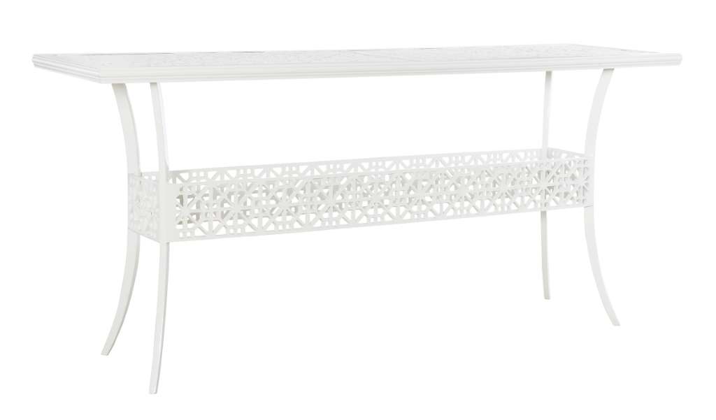 The Haret Outdoor Console offers a stylish and versatile solution for casual outdoor living. Showcasing the signature fretwork of the Haret series on both the top and base stretcher, this console beautifully complements the Haret dining table as a serving surface or functions as an accent piece on a covered lanai. Designed for multi-functional use, the console is available in two finishes: Cloud White and Smoke Grey. A custom-fitted outdoor protective cover is also available and sold separately (HCD8946-PC).
