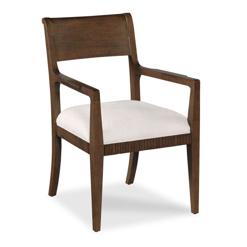 This chair blends classic elegance with modern sophistication. It features intricate fluting on the apron with a beautifully curved wood back.