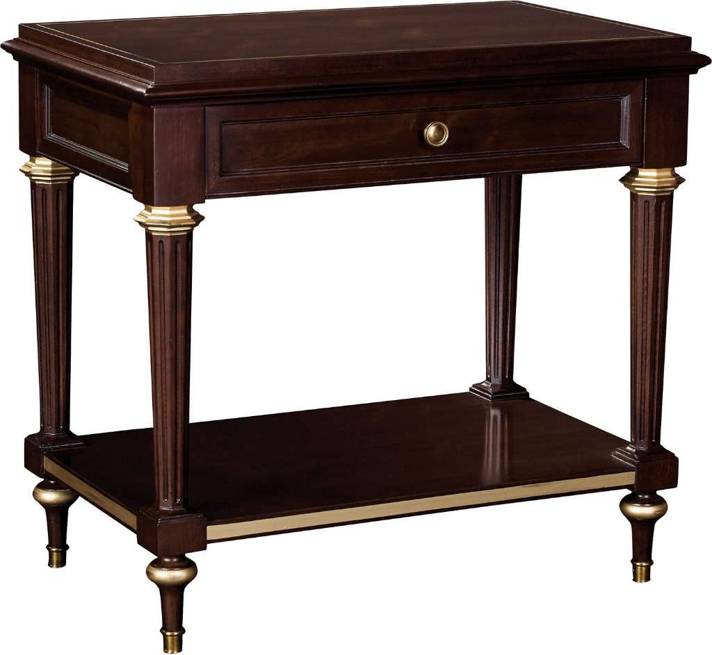 Hillary is openly fancy, feminine, and traditional. Hillary feels like an antique, yet is scaled to modern needs and made with Hickory Chair solidity. Hillary can function as a side table or nightstand with an open shelf and single drawer. Burnished Brass hardware is standard. Optional finishes are available as the HC5282-70.