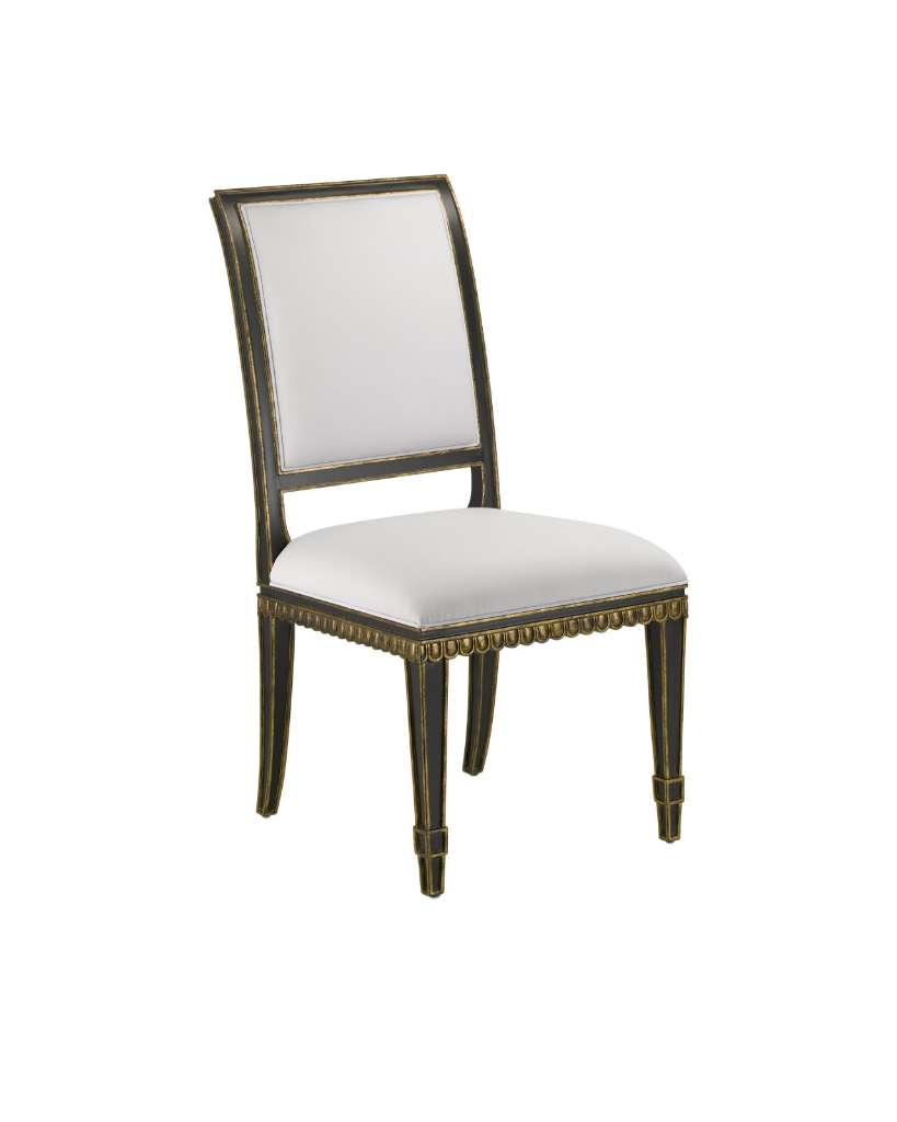Aimee Kurzner was inspired by a vintage Swedish Gustavian design when she envisioned the Ines Black Chair. Rather than the traditional light gray you'd expect, she's created a dark beauty with this version of the chair that has a mahogany frame in a caviar black finish ornamented with antique gold accents.