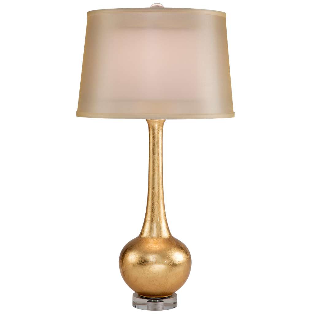 59122- INGENUE ●Gold Leaf 27″H INGENUE Shade Options: 89054 – 12x14x9″ Rnd Canted Sailcloth White 89239 – 12x14x9″ Rnd Dbl Drum Light Gold Organza 89054 – 12x14x9″ Rnd Canted Sailcloth White 89239 – 12x14x9″ Rnd Dbl Drum Light Gold Organza