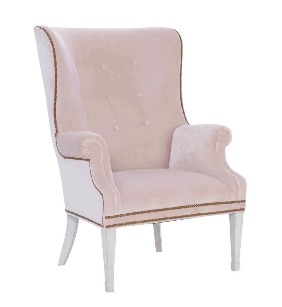 The Issac Wing Chair has a graceful form that is accentuated by its slender tapered legs and barrel-shaped buttoned back. Spring-Down seat cushion standard. Dark Walnut finish shown without standard NS-00 nail head trim.