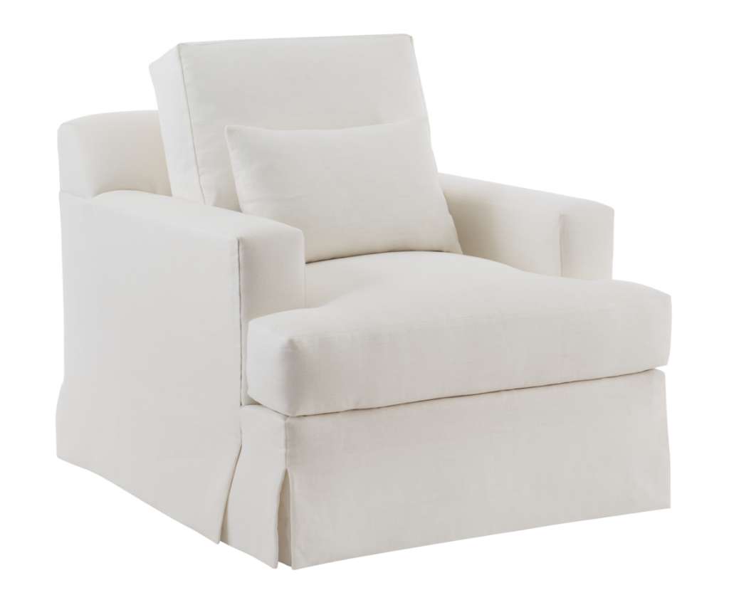 Introducing a timeless French Modern-inspired series of upholstery from Suzanne Kasler. The Jacques Sofa and Lounge Chair are based on a piece from Suzanne’s personal collection. The Jacques series have understated tapered legs made from American Ash that are available in any finish. This chic, handsome silhouette has wide arms and deep seats making for comfortable, accommodating upholstery. The Jacques series is standard without welt trim. The Jacques is available as a lounge chair with legs as well as skirted with a swivel base.