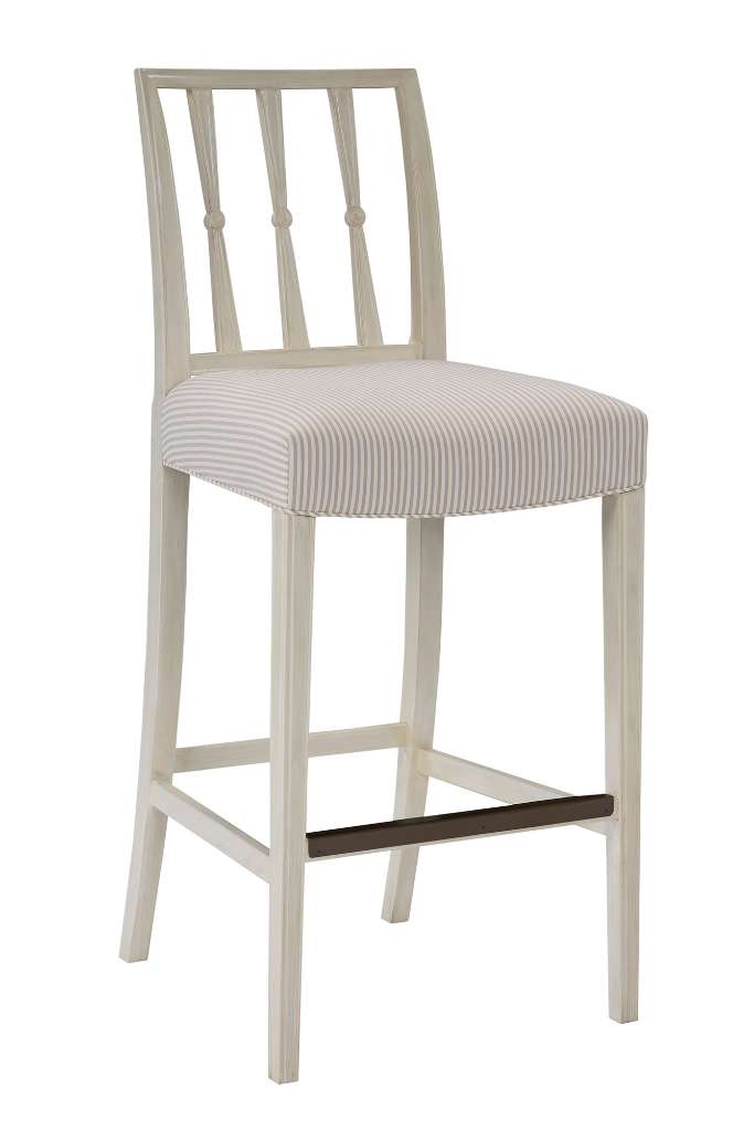 The Jardin Counter Stool, Bar Stool, and Side Chair are perfectly scaled and attentively detailed. Each piece features decorative beadwork on the legs and back, gracefully shaped uprights, and intricate compound angles. Inspired by an antique from Suzanne Kasler's personal collection, this series embodies timeless charm. The Jardin Counter and Bar Stools come standard with a distinguished Antique Brass stretcher guard.