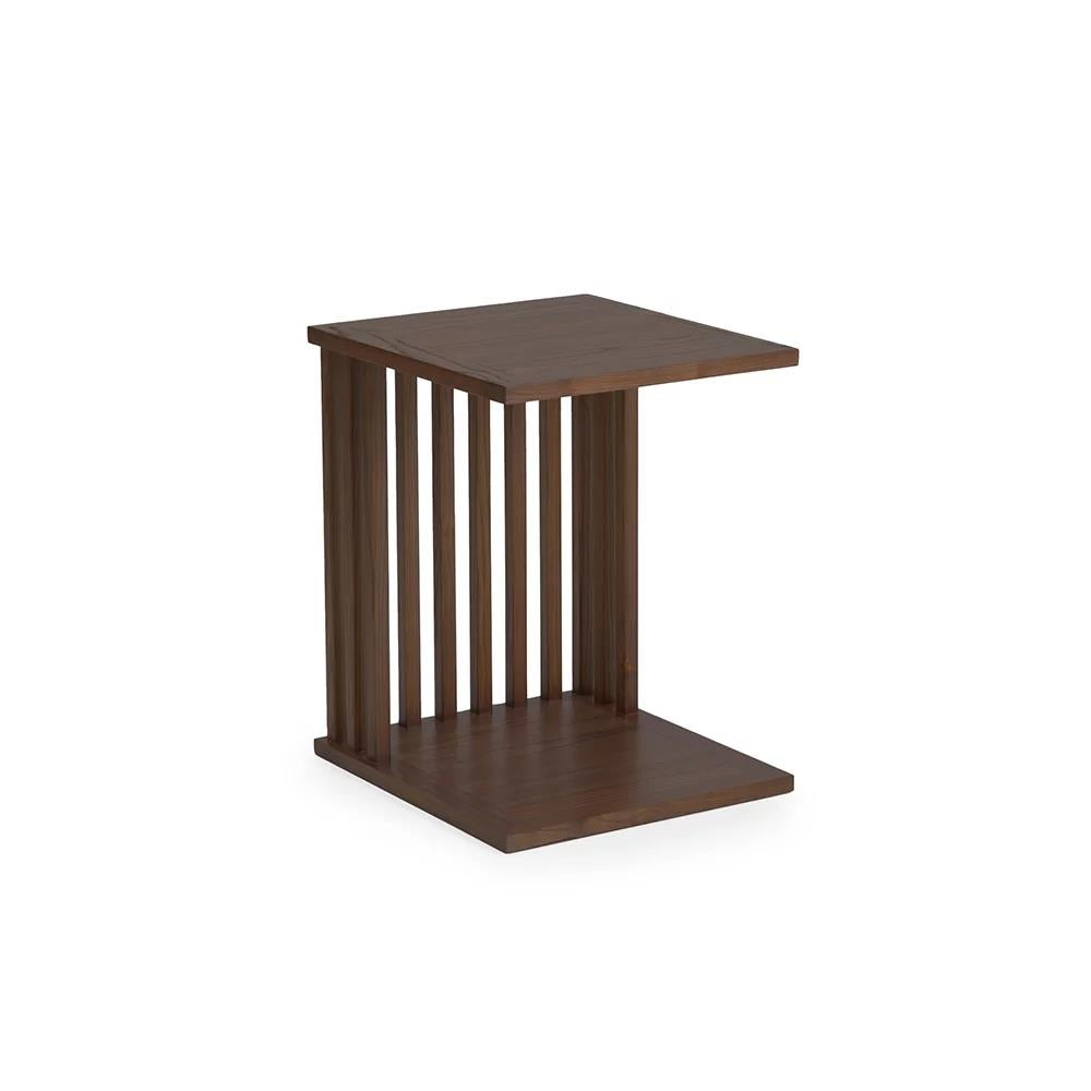 The bold Katsura Collection is inspired by the understated luxury of Asian heritage palace architecture that combines both feelings of modern and traditional design. The Katsura Accent Table features the Katsura Collection's signature slatted wood design on one side and an overhanging top that can slide snuggly over your sofa or chair arms as a great functional detail. Each of our products is unique due to the wood grain variation and hand crafted techniques. Exalt elegance in any living room when combined with another Katsura piece or Maria Yee furnishing. Unsure about color? Order a color swatch here.