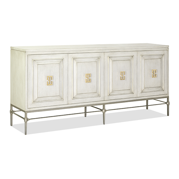 Body Finish: White SandsMetal Base: Warm Silver PearlHardware: Keyser Polished BrassAdjustable ShelvesWidth: 76" | Height: 36" | Depth: 18"Available in all OBD FinishesCustom sizes available