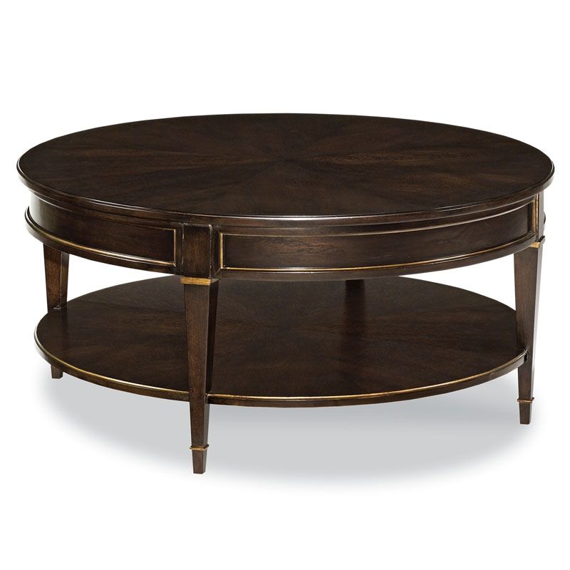 A handsome table inspired by 19th Century Italian originals. The molded round top rests over curved apron rails, accented by gilt detailing. The table is elevated by square tapering posts.
