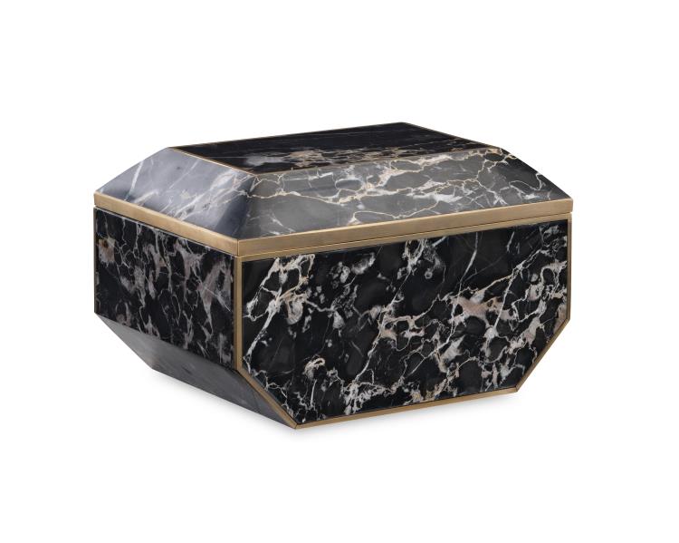 W 10 D 7 H 6 Large golden potoro box with brass details. In Stock Buy Now