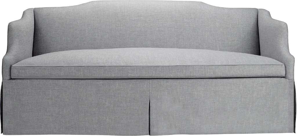 The Laurel Chair, Ottoman and companion Sofa were inspired by a handsome antique sofa that is at the Winterthur Museum in Delaware. The original was covered in black horsehair and was outlined in brass nail heads. The Laurel Chair and Sofa feature gracefully curved arms and a high back. The Laurel Sofa is standard with a pair of 20-inch goose feather throw pillows (not shown) and a spring-down seat cushion.