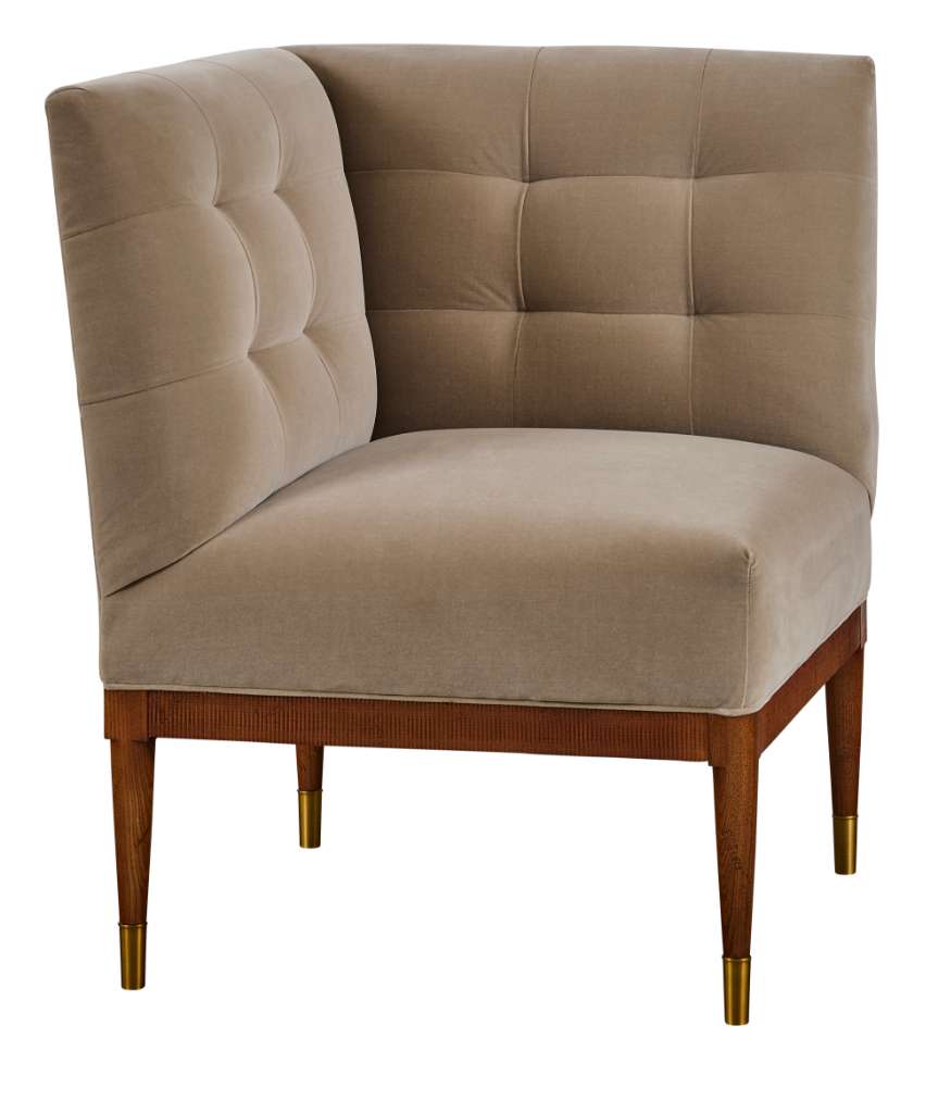 Inspired by the French Moderne chairs of the 1930s, the Laurent series has an elegantly contoured back, a reeded apron, and finely tapered legs terminating in French Brass ferrules. Blind Biscuit Tufted with brass ferrules standard on the banquettes. Available as a dining chair, bar and counter stools and a bench and banquette with convergence.