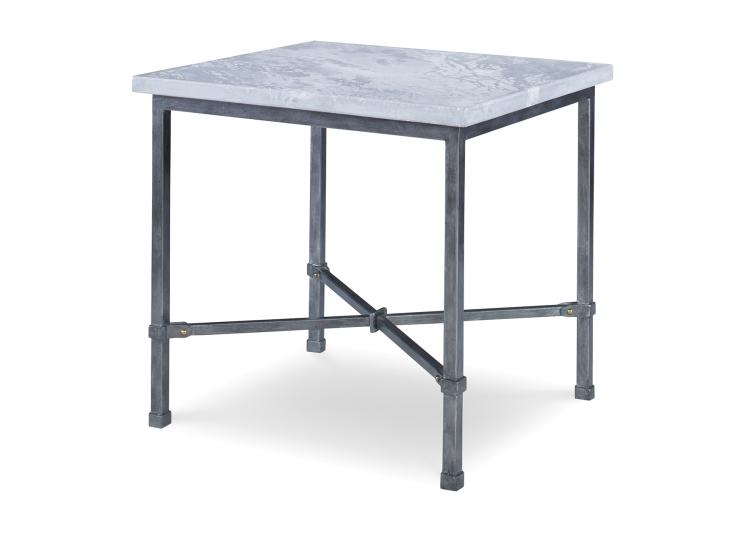 W 26 D 24 H 25 Venetian Pewter Finished Wrought Iron League Chairside Table with Arctic Grey Scagliola Top In Stock Buy Now