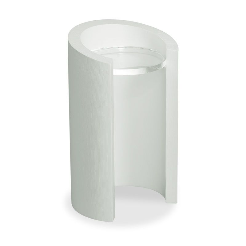 A handy table for drinks inspired by the early 20th century Art Deco style. A rounded oak veneered frame is angled at the top receiving an inset lucite top.