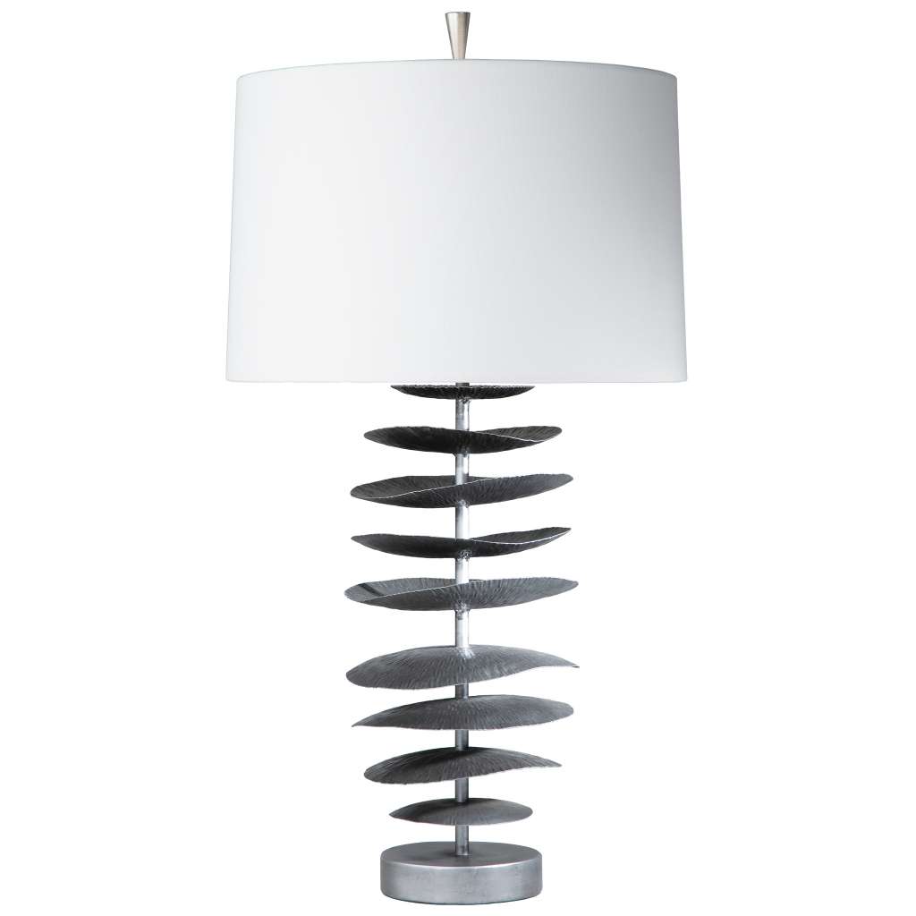 9033- LILY PAD TALL ●Antique Silver Finish 32.5″H LILY PAD TALL Shade Options: 8993 – 16x17x11″ Rnd Drum Linen Oatmeal 89015N – 16x17x11″ Rnd Drum Sailcloth White (w/ Nickel Spider) 8993 – 16x17x11″ Rnd Drum Linen Oatmeal 89015N – 16x17x11″ Rnd Drum Sailcloth White (w/ Nickel Spider) Also avaible as 9032- LILY PAD TALL ●Gilded Iron Finish 9032- LILY PAD TALL ●Gilded Iron Finish