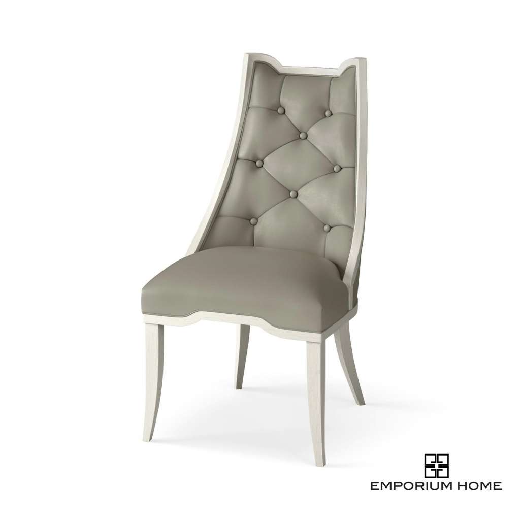 Logan Dining Chair-Antique White-Chesterfield Grey Leather
