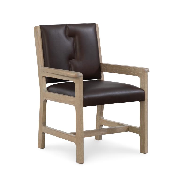 W 23.4 D 24.25 H 34.1 Cerused white oak dining chair with chocolate brown trapunto stitched leather seat back. In Stock Buy Now