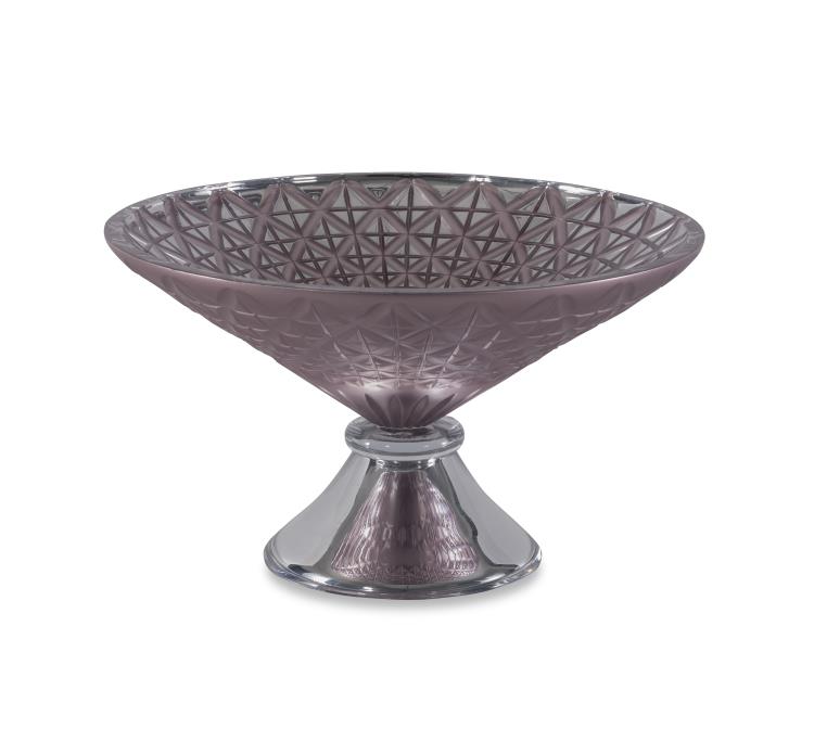W 15 D 15 H 9 Conical Crystal centerpiece bowl, engraved by hand with interlocking motifs In Stock Buy Now