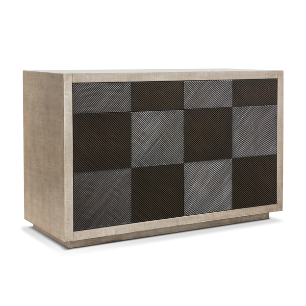 Width 54” | Height: 34” | Depth: 18”Exterior: Palisades SilkTwo Door and Two Drawer Fronts: Dark WalnutInterior: One (1) Adjustable Shelf Behind Each DoorTouch Latch Doors and Drawers