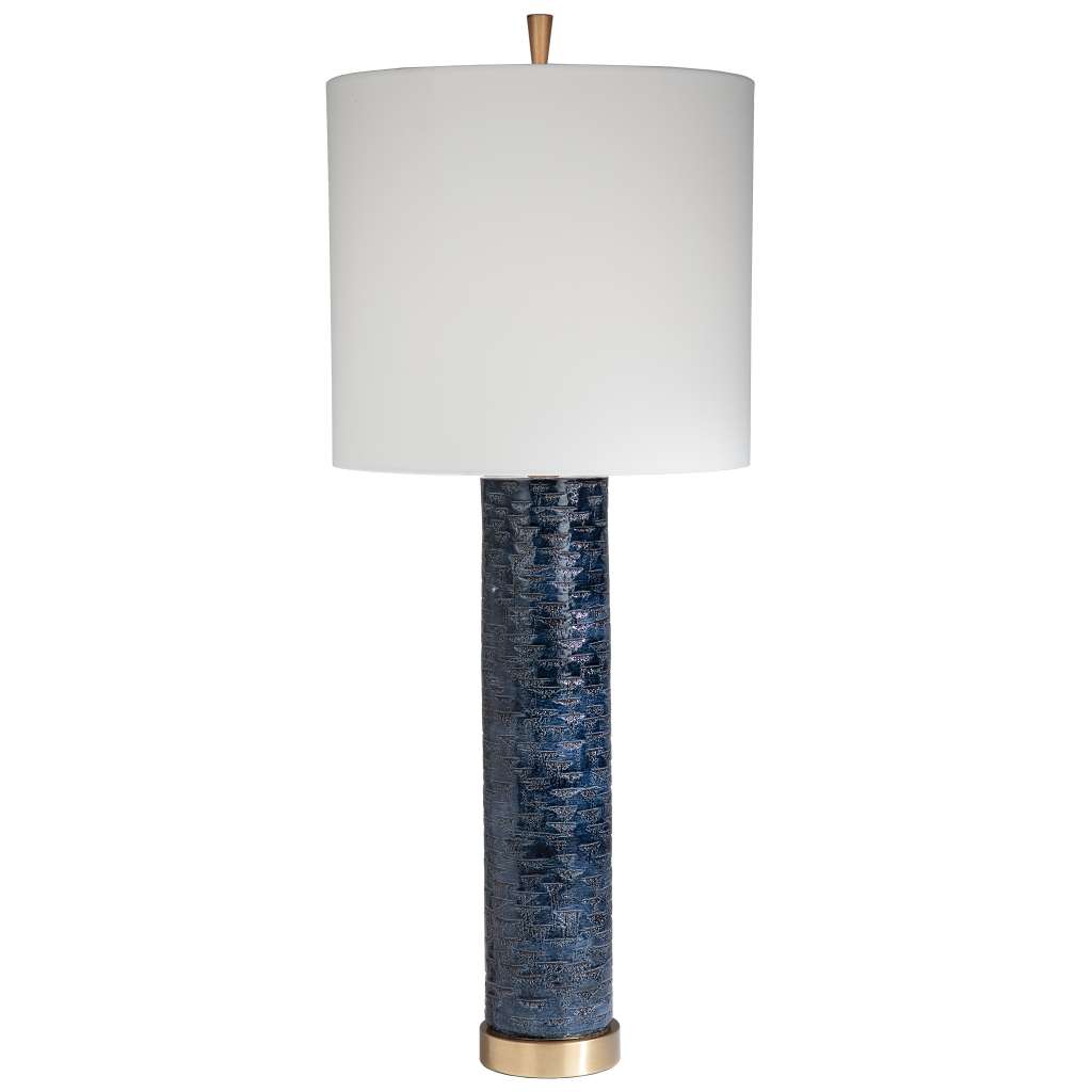 59027- MARCEL Height: 36.5″H Media: Pottery Finish: Glaze Majolica Mounting: antique brass plated steel Special Note: Pantone 19-4125 MARCEL Shade: 89209 – 14.5×14.5×13″Round Drum Sailcloth White 89209 – 14.5×14.5×13″Round Drum Sailcloth White