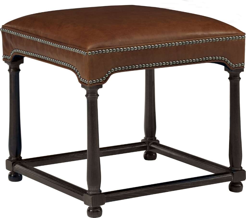 The Marit Bench and complete Marit series feature turned columns and capital arches that reflect English and Arabic architecture. Columns and stretchers adorn the base. Crafted in ash, the Marit series also includes an upholstered cocktail ottoman, bench and a cocktail table with a solid ash plank top. Dark Walnut finish and with NP-08 nail head trim standard.