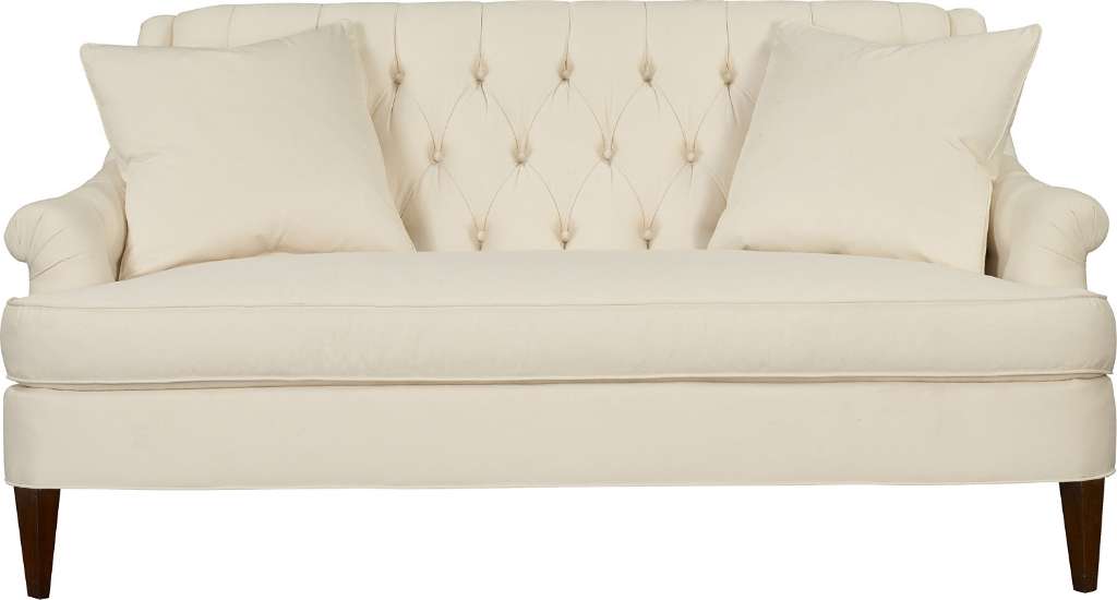 Like its vintage Hickory Chair predecessor, the Marler Apartment Tufted Sofa with coordinating chair and ottoman are luxuriously comfortable. Our modern version features soft curves, rounded corners and sloping arms supported by narrow tapered mahogany legs. The Marler Ottoman gently arcs to conform to the front rail of the chair and features a smooth, non-tufted top. Marler is also available as an 80-inch sofa, chair and ottoman. The chair and sofas are also available without tufting.. A pair of two 20-inch goose feather throw pillows are standard in fabric on each version of the sofas. When ordering this item in leather, please note that pillows are not included and must be purchased separately. To match the standard pillows included with the fabric version, order an additional quantity of pillow SKU HC920-96.