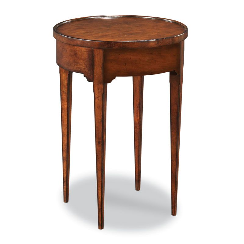 Designed in the spirit of 19th century French originals, this handy table has a round cherry top that is surrounded by a delicate gallery. Shaped apron rails elevate graceful tapering chamfered posts.