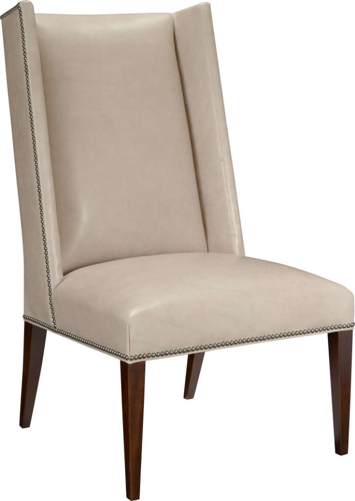 The ash Martin Host Chair without arms is a high back chair with narrow wing extensions, a tight seat and slender tapered legs. Depending on your preference this host chair is available with a narrow weltless boxed edge loose seat cushion or as a tight seat. Inspired by one of Hickory Chair’s finest 1930’s pull-up chairs, the Martin series is available with or without arms and is constructed of solid ash or solid mahogany to suit a multitude of preferences. Shown in optional NS-09 nail head trim.