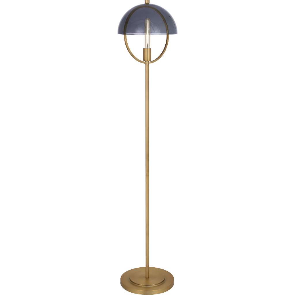 Lacquered Burnished Brass With Smoked Glass Shade