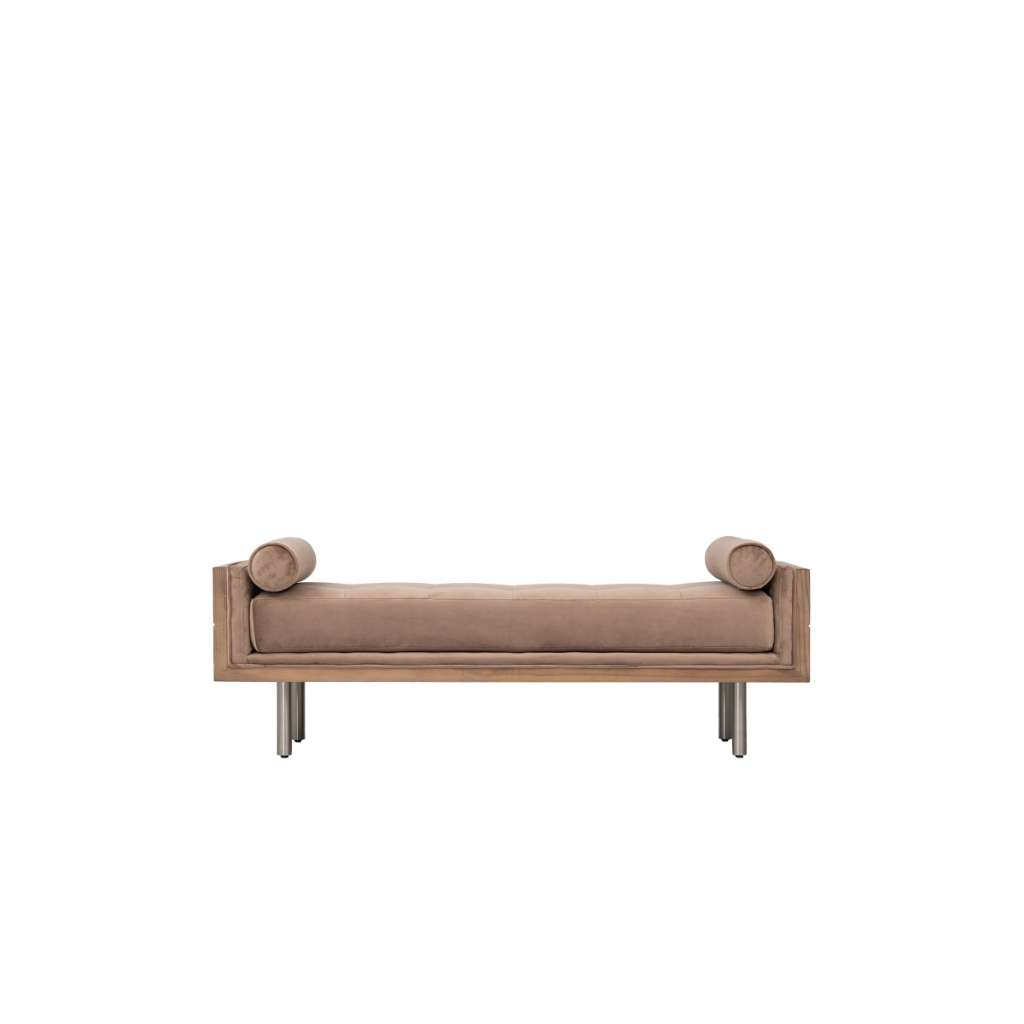 The Maxwell's stunning wood frame and designer silhouette lends the collection a natural and sophisticated beauty that complements its angular, modern shape. This bench offers comfort and style with your choice of fabric for the upholstered seat and accent bolster cushions. Style it as a beautiful piece for your entry way or as accent seating for your living room. Unsure about color? Order a color swatch here.