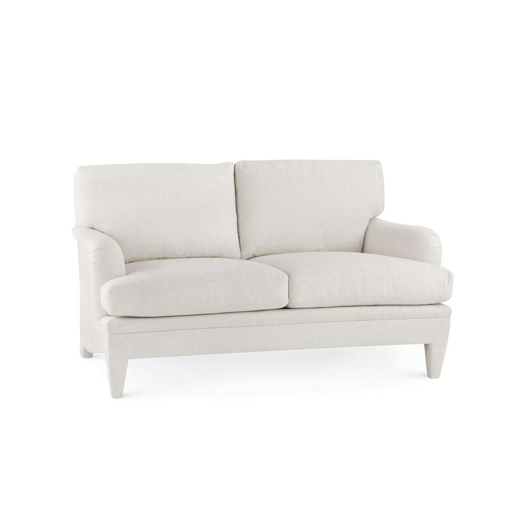 The Meadows Loveseat is fully-upholstered and made by hand in the USA using kiln-dried solid Maple with sinuous springs. One of our more interesting shapes measuring 60 inches wide, the rounded arms and padded seat embody our mentality of "romantic design, retold." While shown in Kingston Warm White (Fabric No. 1430) fabric, you can choose from any of the upholstery options below.
